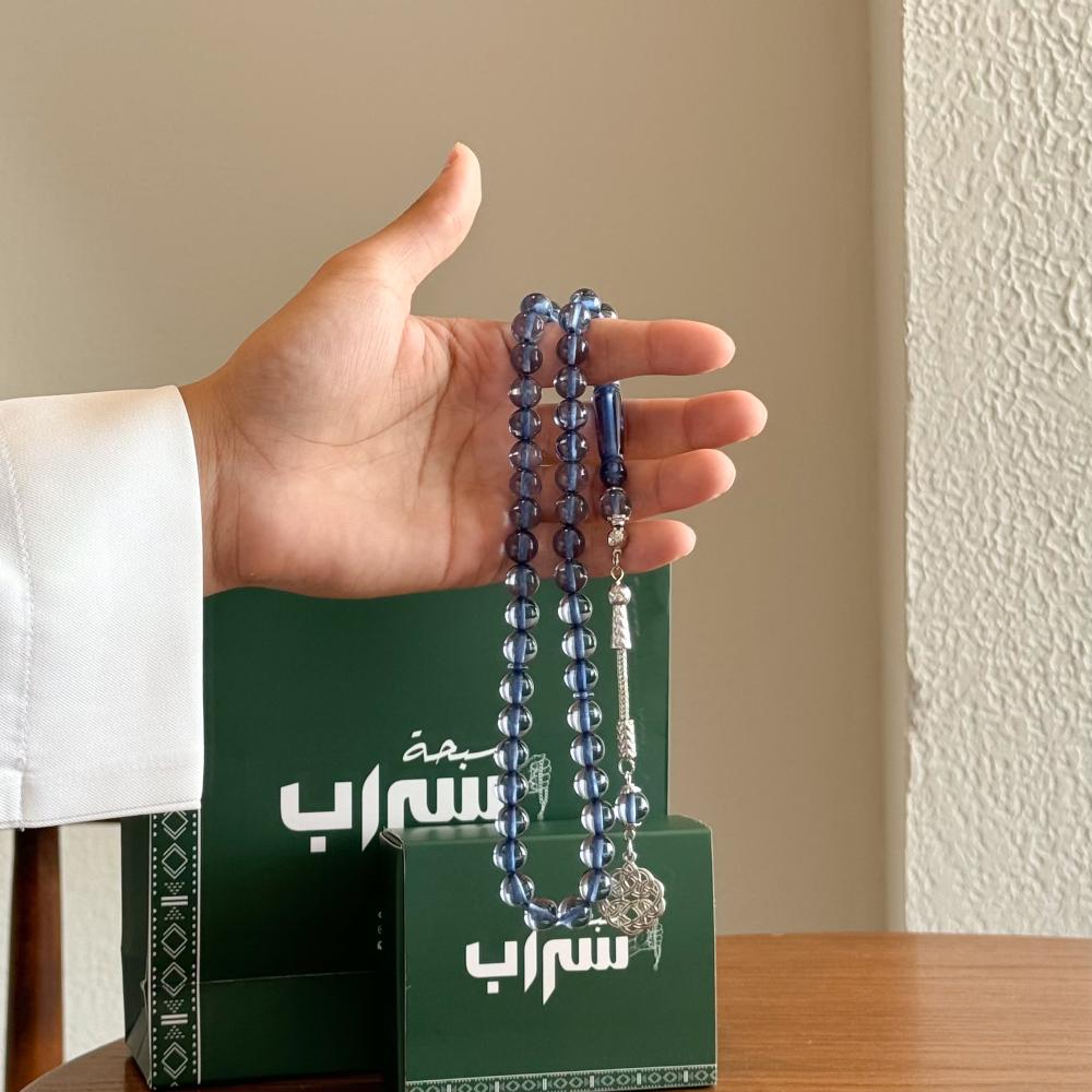 سبحة بكلايت طربزونة معدن سماوي شفاف